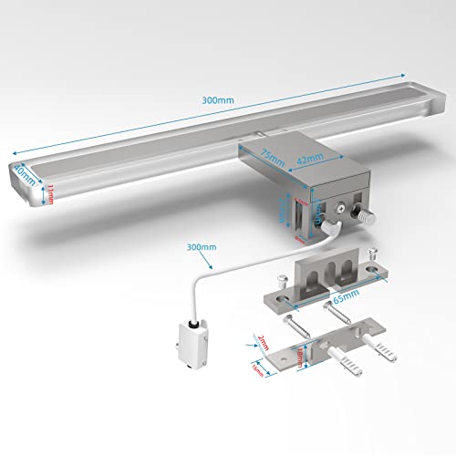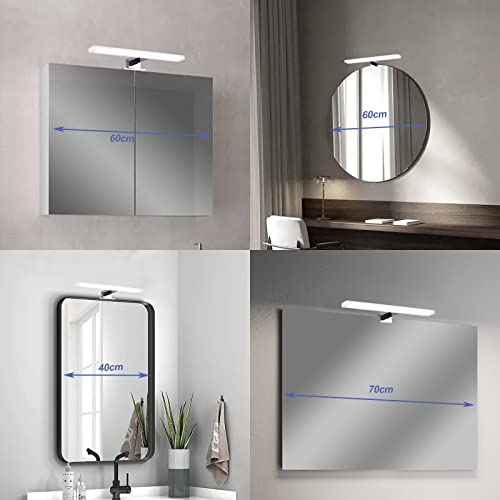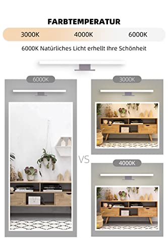【Luce dello specchio del bagno con montaggio 3 in 1】 Fissa le luci specchio bagno allo specchio (l'apertura è max 6 mm) o avvita all'armadietto dello specchio o al supporto a parete. L'acrilico satinato emette luce con una temperatura di colore bianco puro di 6000 K. Il design bello e chic protegge i tuoi occhi.