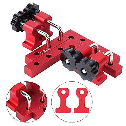 Dilwe 160 * 160mm Morsetti ad Angolo Retto, Righello di Posizionamento Tipo L in Alluminio, Piazze di Posizionamento a 90 Gradi con 2 Squadre e 4 Morsetti, Kit di Strumento per Carpenteri