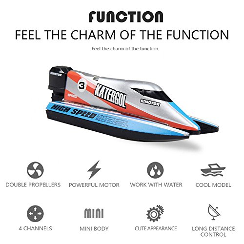 FUNZIONAMENTO FACILE: con il telecomando, la barca da regata RC è facile da controllare e gira a sinistra / destra / avanti / indietro, con orientamento accurato di 180 gradi.