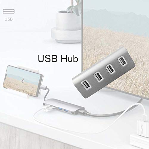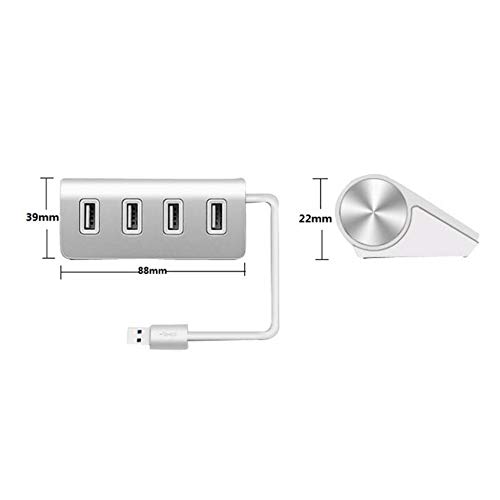 Dimensione Portatile in Lega di Alluminio Super High Speed 4 Porte USB Hub Adattatore Splitter USB con indicatore LED per PC Laptop Computer - Argento