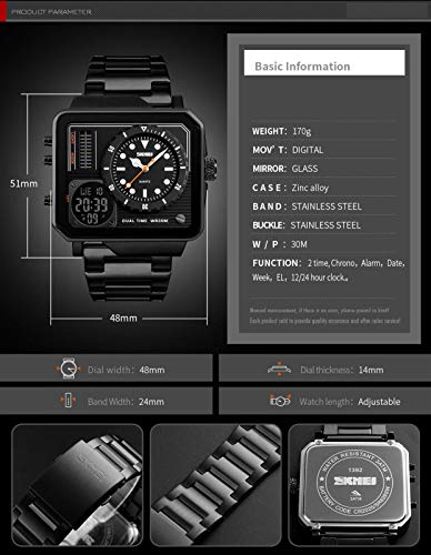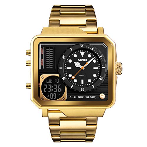 Design raffreddore: quadrante a triplo tempo unico e fresco con cronometro, sveglia e data, grande quadrante a LED con cinturino in acciaio inox classico, semplice e generoso, che mostra il tuo sapore straordinario.