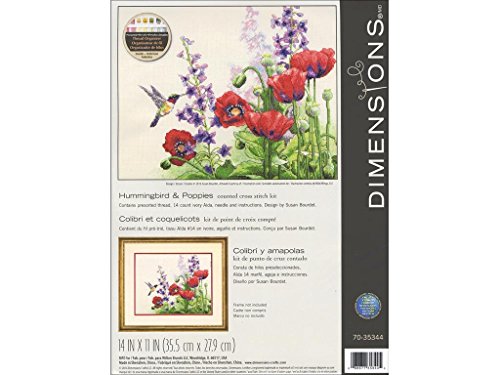 DIMENSIONS Cross Stitch Kit 14x11 Humbird&Poppies X, Cotone, Vario, One