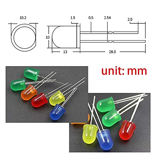 DIMENXONG Componenti digitali elettronici F10 10mm LED Emissione diodo Rosso Bianco Giallo Verde Blu 3 V DIY Circuito PCB TRASPARDENTE TRASPARDATO Lampadina diffusa (Colore: 50pcs Red)