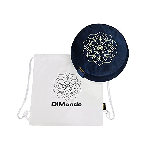 DiMonde Zafu Cuscino Rotondo per Meditatione e Yoga, Imbottitura in pula di Grano Saraceno, sfoderabile e Lavabile, Manico Laterale, Borsa in Cotone, Mandala, Altezza 13 cm, Diametro 33 cm (Blu)