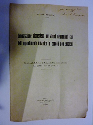DIMOSTRAZIONE ELEMENTARE PER ALCUNI DETERMINATI CASI DELL'INGRANDIMENTO DINAMICO IN PENDOLI NON SMORZATI Estratto dal Bolletino della Società Sismologica Italiana Vol. XXXIV Fasc. 5 - 6 ( 1936 - XV )