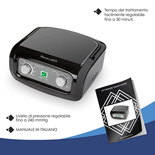 Dinamicamed ® Pressoterapia 4 Manuale Classic Pressoterapia Linfodrenaggio Professionale con 4 Camere d'Aria, Pressoterapia per Casa con 2 Gambali XL e Bracciale