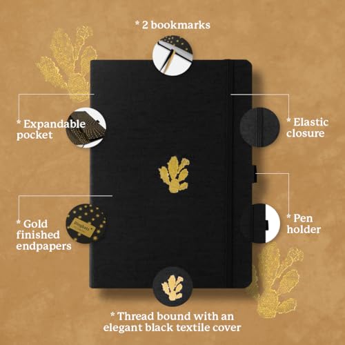 Dingbats - Quaderno Pro Plain Large, Black Cactus, B5 - Carta Perforata A Prova Di Inchiostro Da 160 G/mq - Include Tasca, Portapenne E Segnalibro