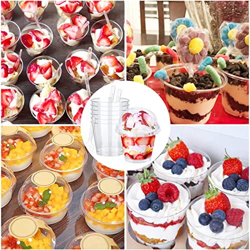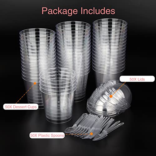 Dingdongji 50 Pezzi Tazze da Dessert,200 ml Tazze da Dessert con coperchio e cucchiaio,Coppette da Dessert Plastica Riutilizzabile,Bicchierini da Dessert Trasparente per Dessert,Mousse, Budini,Gelati