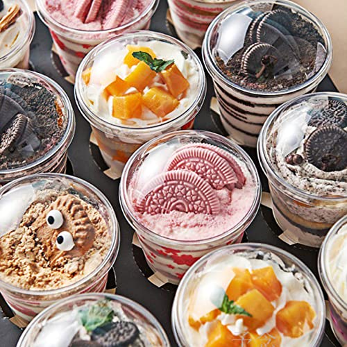 【Design raffinato】 Il design cristallino delle tazze da dessert è molto adatto per contenere deliziosi dessert come gelatina, budino, mousse, gelato, ecc., rendendoli delicati e deliziosi. Ogni tazza è dotata di coperchio e cucchiaio e il coperchio può impedire che il cibo venga contaminato o versato, in modo che il cibo sia sicuro e appetitoso