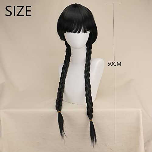 【Parrucca versatile】 Ideale per tutti i giorni, Halloween, cosplay, anime, fumetti, mascherate, sfilate di moda o intrattenimento. Completa il tuo look da ragazza gotica con questo adorabile accessorio per costumi del mercoledì, perfetto per travestimenti di Halloween, feste a tema.