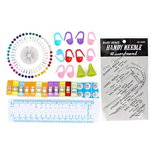 Kit da cucito completo: Il pacchetto comprende: Cucirini, aghi, spilli, nastro di misura, Bottoni, Snap-fissaggio, clip, Seam Ripper, pennarello, uncinetto, ditale, forbici, spille di sicurezza, infila ago, lente d'ingrandimento, e così via.