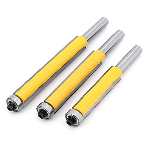 DingGreat 3Pcs 8mm Gambo Fresa a Taglienti Diritti con Cuscinetto, Fresa per lavorazione del legno, lama extra lunga