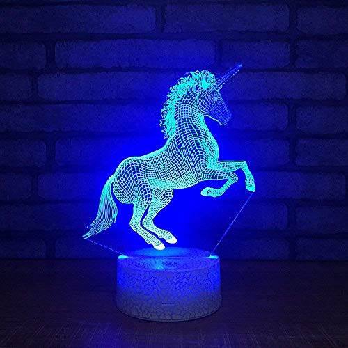 DingGreat 3D Illusion Light ottico,7 cambi di colore Luce notturna a LED con acrilico piatto, base in ABS, carica USB per la decorazione domestica (Lampada cavallo)