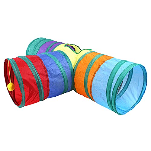 Tunnel a 3 vie per conigli o gatti, un giocattolo interattivo perfetto per piccoli animali domestici. Il tunnel per gatti ha 1 foro e 1 palla giocattolo sospesa.