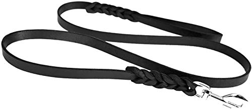 Dingo Guinzaglio in morbida pelle con manico intrecciato e moschettone, 12 mm x 230 cm, Nero