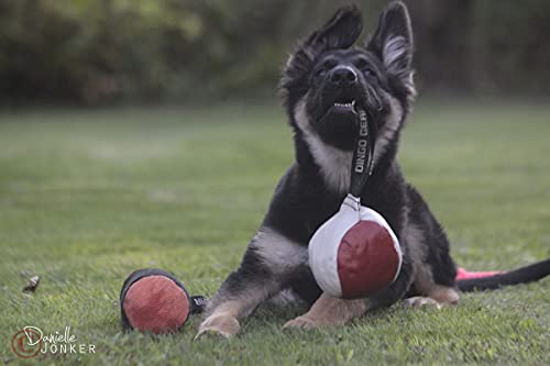 DINGO GEAR S02779 - Palla in vera pelle con manico per l'addestramento del morso, Ø 11 cm, per recuperare e ricompensare il cane giocattolo casuale