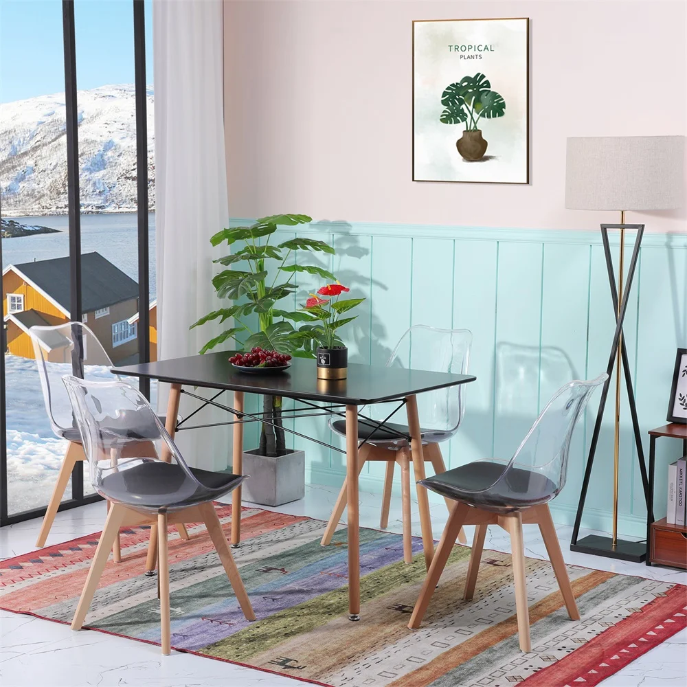 Dining Chairs Modern Nordic Plastic Transparent Solid Wood Legs with Soft Padding for Kitchen Dining Living Room Home Furniture