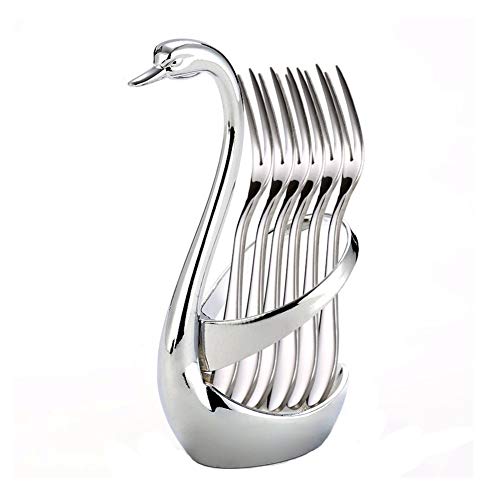 Swan Base Dinnerware Set, Stainless Steel Fruit/Dessert Flatware Set for 7-1 Cygnus Storage Shelf with 6 Forks