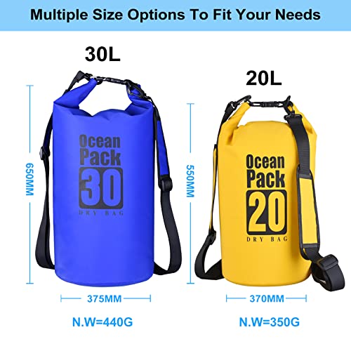 DINOKA Borsa Impermeabile Barca da 20L/ 30 Litri, Sacca Impermeabile Mare Dry Bag, con Regolabile Tracolla e Una Custodia Waterproof Cellulare, Zaino Stagna Borsetta per Canoa, Kayak, Campeggio, Pesca
