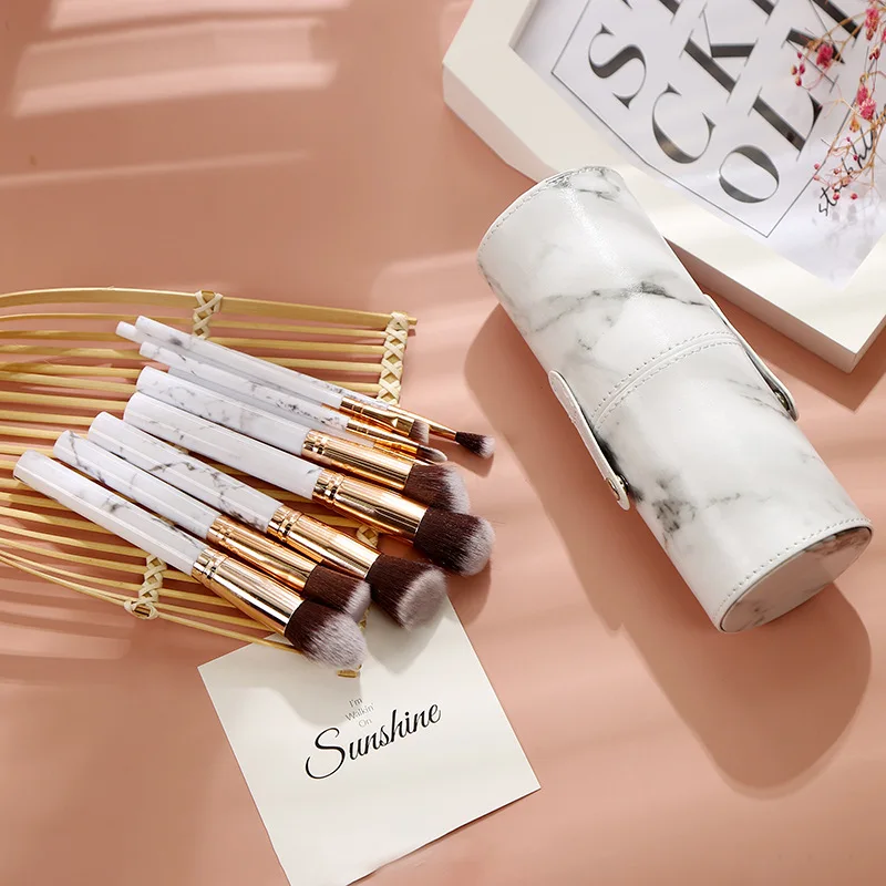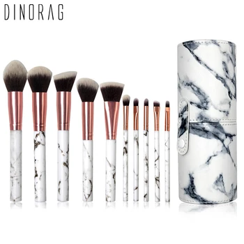 Dinorag 10pcs Marble Makeup Brush With Holder Rose Gold Make Up Brushes Synthetic Makeup Brushes Set Professional With Bag