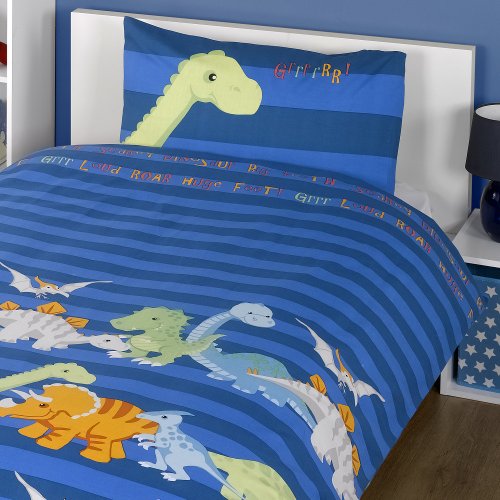 Dinosaur di Copripiumino e federe, Colore: Blu
