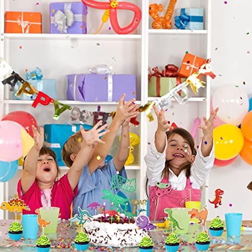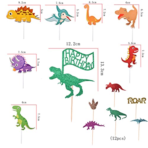 【Splendidamente Progettato】il cake topper dinosauro è a tema dinosauro, 14 pezzi in totale,1 motivi per happy birthday.