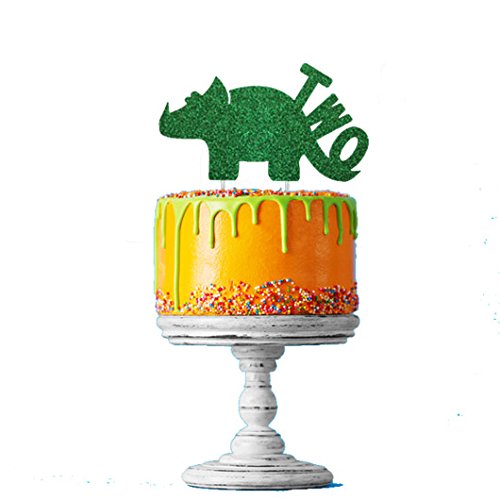 Dinosaur cake topper - Numero due Dinosaur cake topper - Brillantini cake topper - Boys 2 nd birthday cake topper, Green, 15.7 x 8.9 cm