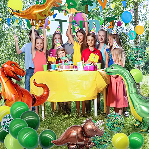 SET PER FESTE DI DINOSAURI: 2 * palloncini di dinosauro 3D grandi, 3 * palloncini di dinosauro 3D medi, 1 * striscione di compleanno, 1 * decorazione per torte, 32 * palloncini in lattice (colore: giallo, verde, verde chiaro e verde scuro) + 8 * palloncini con paillettes;