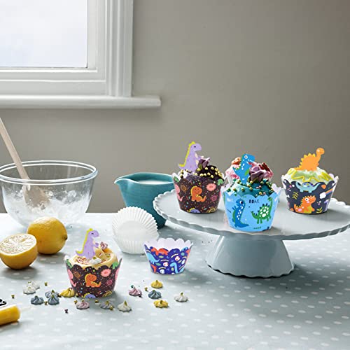 24 Set Dinosauro Cupcake per Decorazioni, Dinosaur Cake Toppers, Muffin Decorazioni, Dinosauro Cupcake Wrapper, Cake Topper Dinosauri Giurassici per Compleanni e Feste Adolescenti Ragazze Adulti