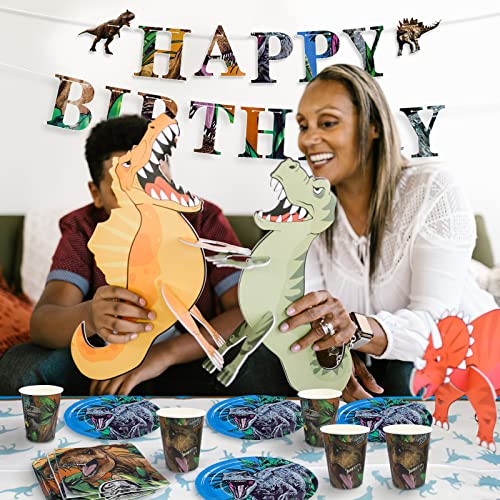 Dinosauro Party Tableware, 42Pcs Jurassic World Kids Birthday Decoration, Boy Birthday Parties Party Set di Posate, Piatto tovagliolo tovaglia di carta tazza Banner,Forniture di partito per i bambini