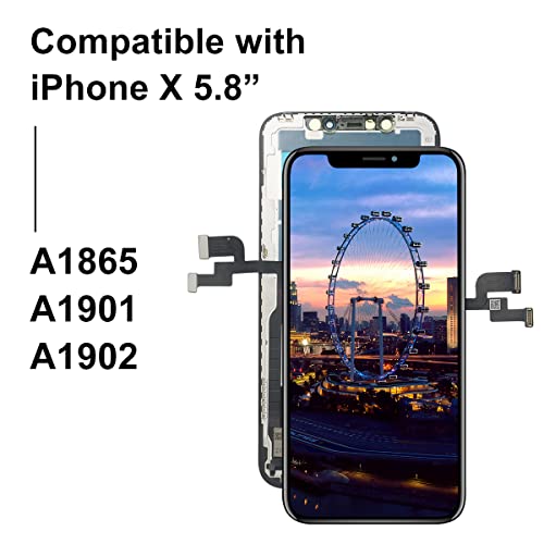 Dinow Display per iPhone X Schermo per iPhone X 5.8'',LCD per iPhone X con Strumenti Kit di Riparazione(Modello A1865 A1901 A1902)
