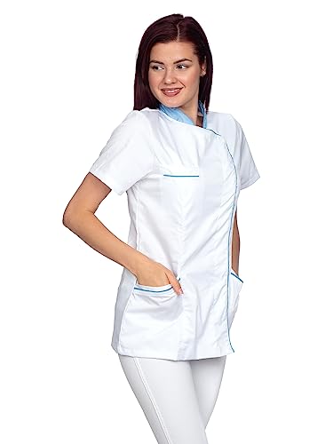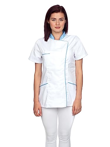 DINOZAVR Sintia Donna Camice da Lavoro Medico Casacca Infermiere con Bottoni Automatici Maniche Corte Bianco L