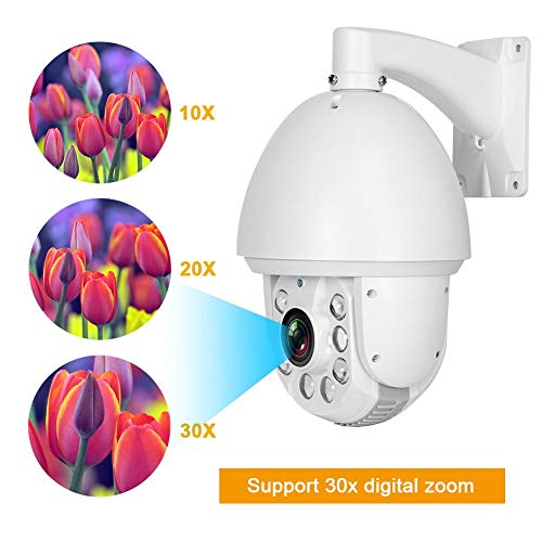 Dioche Telecamera dome PTZ HD 1080P, telecamera di sorveglianza CCTV coassiale PTZ, telecamera di sicurezza wireless, con zoom 30X e visione notturna a 6 LED IR(2MP EU)