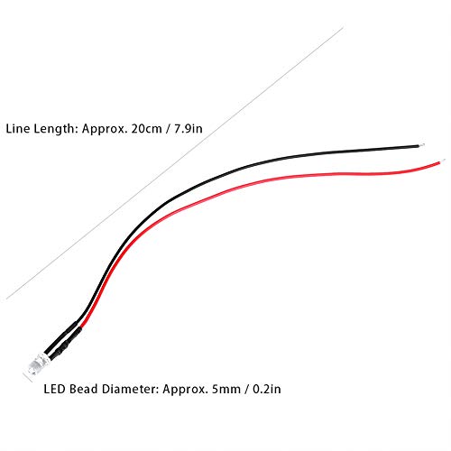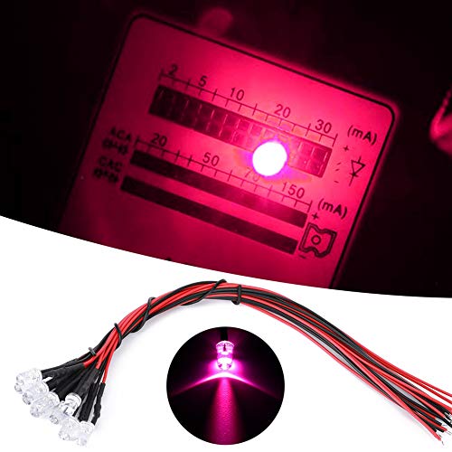 Diodi emettitori, 50Pcs Diodo emettitore di luce precablato 12V 5mm Testa tonda Evidenzia Perline LED Luce rosa per illuminazione automobilistica, Esperimento di circuiti scientifici