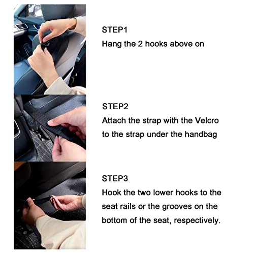 Facile da installare: il supporto per borsa per auto è adatto per auto con barre del poggiatesta. Per prima cosa, appendi i 2 ganci sopra su ciascuna delle barre del poggiatesta. In secondo luogo, agganciare la cinghia con il velcro alla cinghia sotto il supporto della borsa, e infine agganciare i due ganci inferiori rispettivamente alle guide del sedile o alle scanalature sul fondo del sedile.