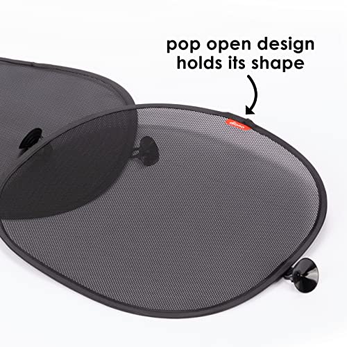 POP Design aperto: Sun Stop ha un design rapido e pop-aperto, per una facile installazione sulla maggior parte dei finestrini laterali del veicolo/posteriori, fissaggio con ventose per un posizionamento sicuro e facile.