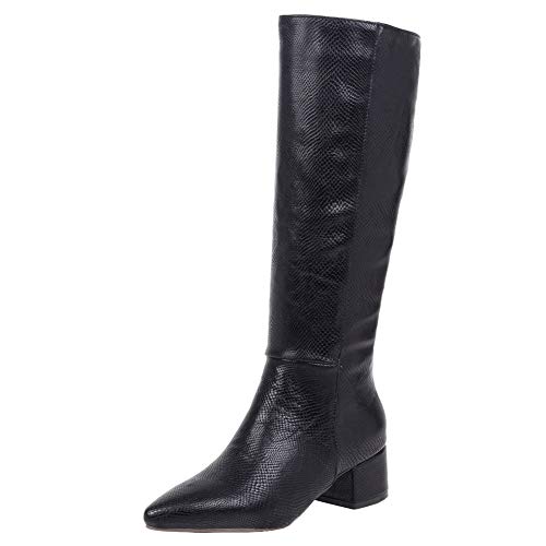 Si Diosa Elegant Donna Stivali al Ginocchio Pointed Toe Stivali slouch Tacco a Blocco Pull on Festa Stivali Lunghi Wide Open Stivali for Work Black Taglia 46