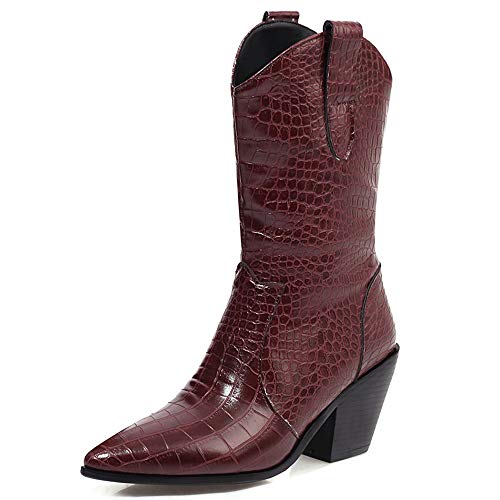 Si Diosa Moda Stivali Occidentali Ankle High Tacco a Blocco Donne Wide Calf Stivali Medi Pull on Plus Size Knee Stivali Heels Scarpe Invernali Claret Size 48