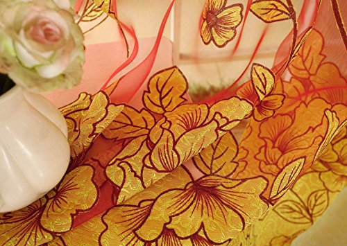 Diossad Tulle Voile Porta Finestra Tenda Rosso Drape Panel Sheer per Camera da Letto Bagno Soggiorno Camera Sciarpa per Finestra con Frappe