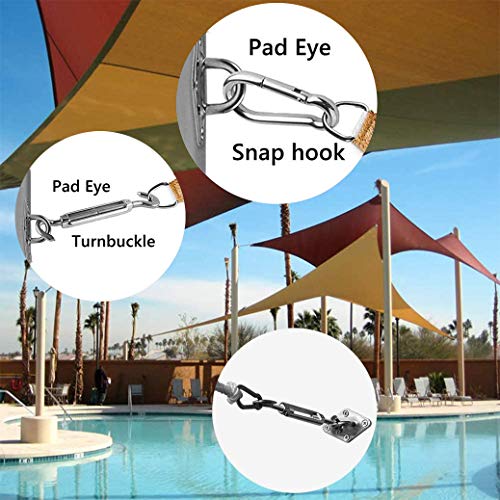 Ampia applicazione: Tendalino parasole con moschettoni, tenditori e occhielli, questo kit hardware consente un'installazione facile e sicura della tua tenda da sole a tettuccio quadrato. Non importa dove ti metti il tuo ombrellone, sarai in grado di rilassarti in tutta comodità all'ombra che ti regala.