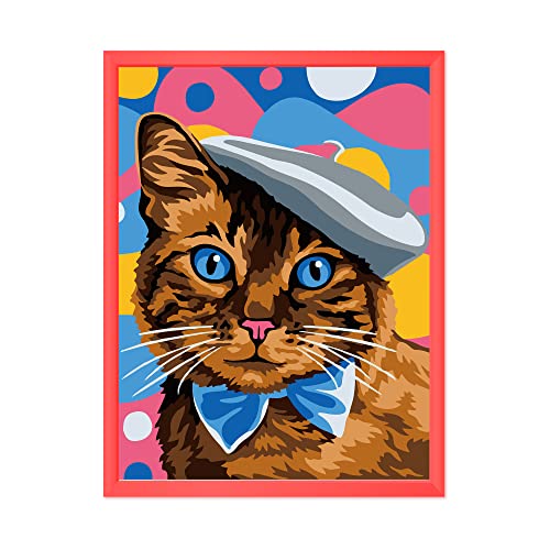 Dipingere con i Numeri Bambini, 7 8 9 anni Gioco Creativo Per Bambine e Bambini con Cornice 3 Pennelli e Colori Acrilici, 18 X 24 cm(Gatto elegante)