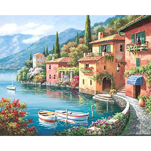 ZXDA Dipingi in Base ai Numeri per Adulti Bambini Paesaggio del Porto Pittura a Olio Dipinto a Mano Disegno su Tela Decorazioni per la casa Regalo A21 40x50cm