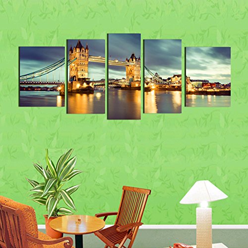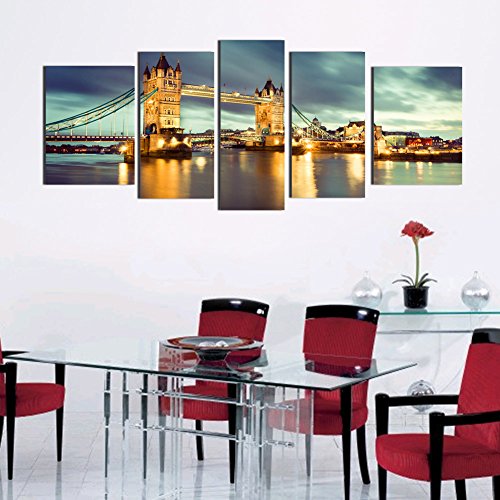 Dipinti con cornice Cenblue, pittura a olio, ornamento da muro 5 pezzi London Bridge, stampe su tela per casa e ufficio, Tela, Frameless, 8*16inch*2, 8*20inch*2 8*24inch*1