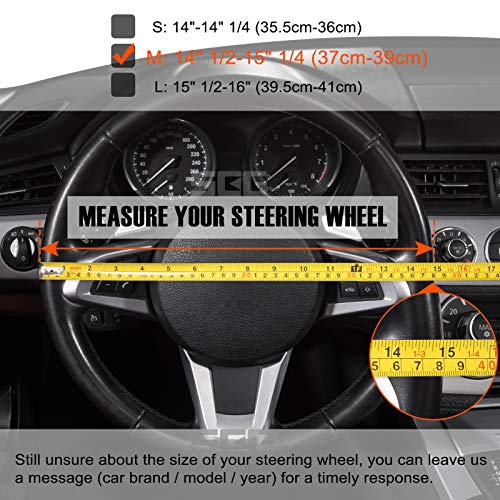 【Pronto per l'installazione】 Riscalda il coperchio dello sterzo automatico e infilalo sul volante. L'installazione è abbastanza semplice, qualsiasi adulto può installare questo coprivolante. Adatto per volanti di dimensioni standard con diametro esterno di 37-39 cm.