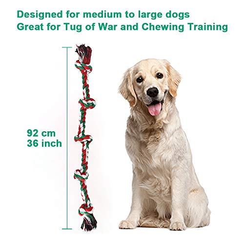 Design perfetto: progettato per razze grandi e razze medie. Super resistente e durevole. Extra large size 36 pollici 5 nodi rimorchiatore corda migliore per masticatori aggressivi per tiro alla fune o allenamento da masticare, inoltre, la corrispondenza dei colori rosso-verde-bianco è bella e luminosa, incontra bene l'atmosfera natalizia.