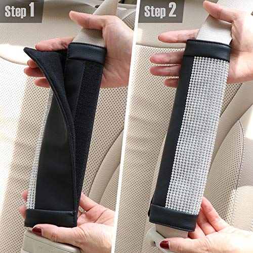 SEG Direct Diamante Cuscinetti per Cintura di Sicurezza Confezione da 2 Nero Microfibra Pelle con Intarsiato Strass Bling Bling Argento