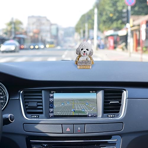 Dirfuny Decorazioni per cruscotto, testa di barboncino per cruscotto auto, realistica 3D, accessorio per auto