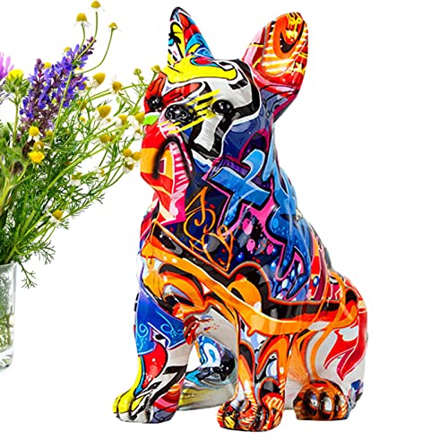 Dirfuny Scultura decorativa per cani, statua colorata di bulldog francese - statue di bulldog per la decorazione domestica, ornamento dipinto a forma di cane, artigianato in resina per soggiorno