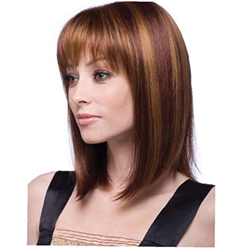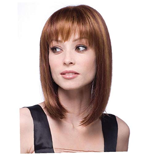 1pc Diritto Naturale Dei Capelli Parrucche Con La Frangetta Corta Bob Parrucche Calore Sintetica Resistente Dei Capelli Di Cosplay Del Costume Quotidiano Parrucche Per Le Donne (brown)