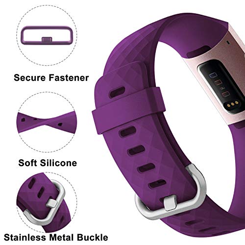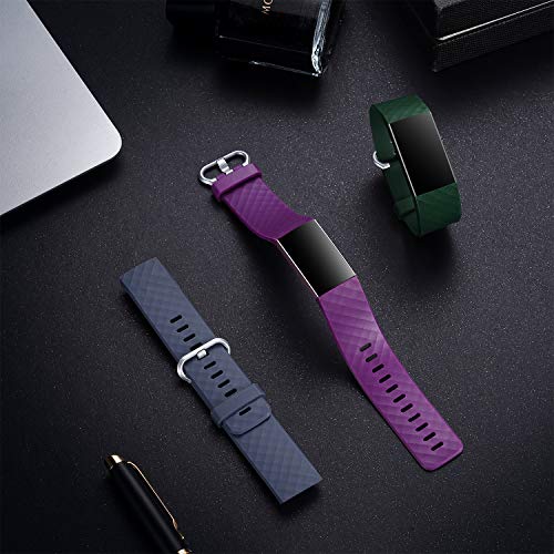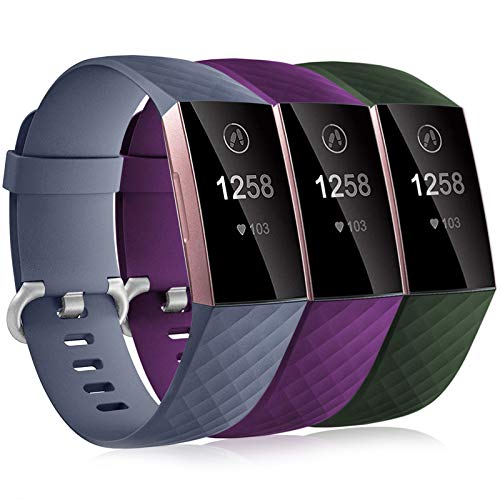 Dirrelo 3 Pack Cinturini Compatibile con Fitbit Charge 3/Fitbit Charge 4/Charge 3 SE Cinturino per Donna Uomo, Cinturino Sportivo di Ricambio in Silicone Morbido Regolabile, Ciruela+Gris+Verde L